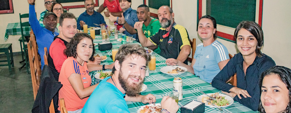 À noite, hora da janta. Grande alvoroço, todos se amontoam na cozinha, cada um ajudando para realizar uma “senhora” ceia comunitária! Um leva o feijão, outro o arroz, o bacon, a linguiça e o macarrão “aparecem” das mochilas - não podemos nos esquecer daquela couve, apanhada da escola, mais cedo!... Não falta um com seu cantilzinho de cachaça ou uísque, pra animar o repertório da prosa! Em noites estreladas, o grupo se reúne do lado de fora pouco antes de dormir; apaga as luzes e celulares, apenas para observar em silêncio a divina beleza da abóbada celeste.